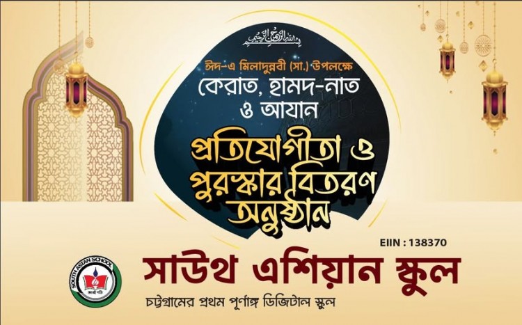সাউথ এশিয়ান স্কুলের ঈদ—এ—মিলাদুন্নবী সা. উপলক্ষে দোয়া মাহফিল ও পুরস্কার বিতরণ অনুষ্ঠান অনুষ্ঠিত। চট্টগ্রামের প্রথম পূর্ণাঙ্গ ডিজিটাল স্কুল, সাউথ এশিয়ান স্কুলে যথাযোগ্য মর্যাদায় ঈদ&mdash ..